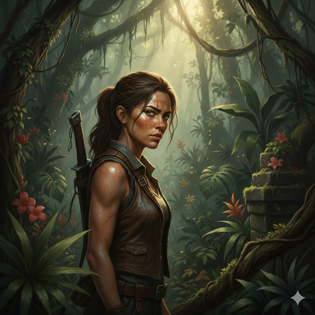 A dramatic jungle portrait enhanced by sharp Rembrandt shadows.