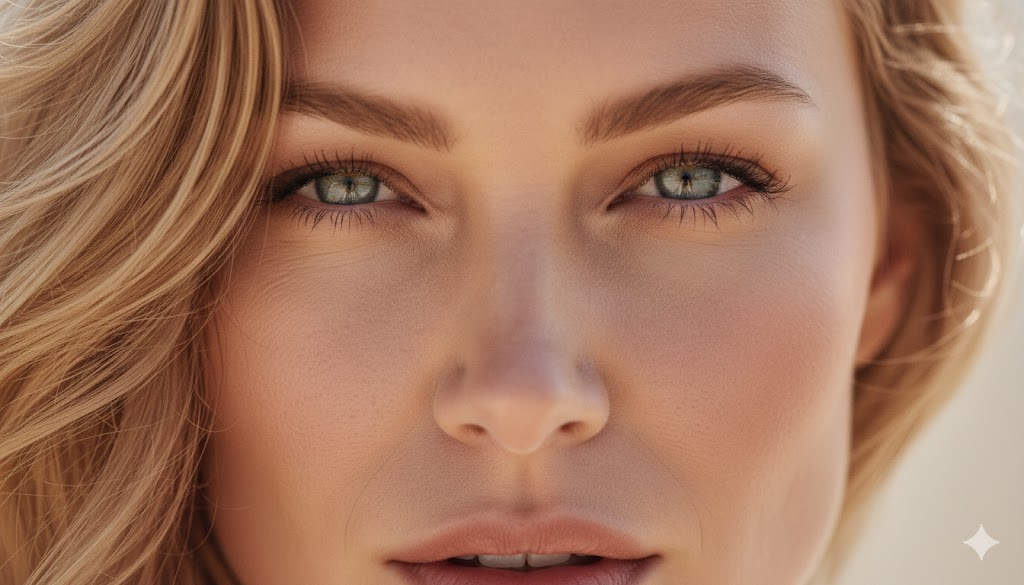 “Generate a macro-style close-up portrait featuring high-detail skin texture, sharp pores, glistening eyes, natural highlights, and a neutral blurred backdrop. Maintain 100% facial accuracy.”