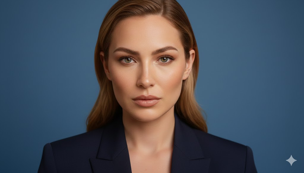 “Create a hyper-clean, professional corporate headshot. Neutral lighting, soft shadows, detailed skin, and natural colors. Replace background with a smooth gradient blue office portrait backdrop. Maintain exact facial identity. 85mm DSLR headshot style.”