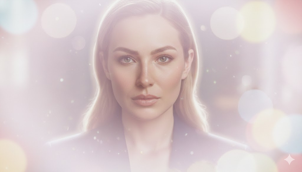 “Create a dreamy portrait with soft-focus lighting around the edges but crystal-sharp eyes and facial features. Pastel-toned background with gentle haze. Skin tone stays natural.”