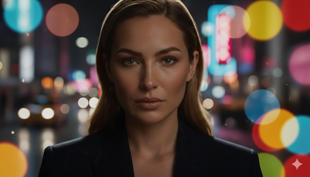 “Create a modern street-style portrait with realistic urban lighting, high contrast, ambient reflections, and clean skin texture. Background becomes a blurred city night scene. Preserve face structure and expression.”
